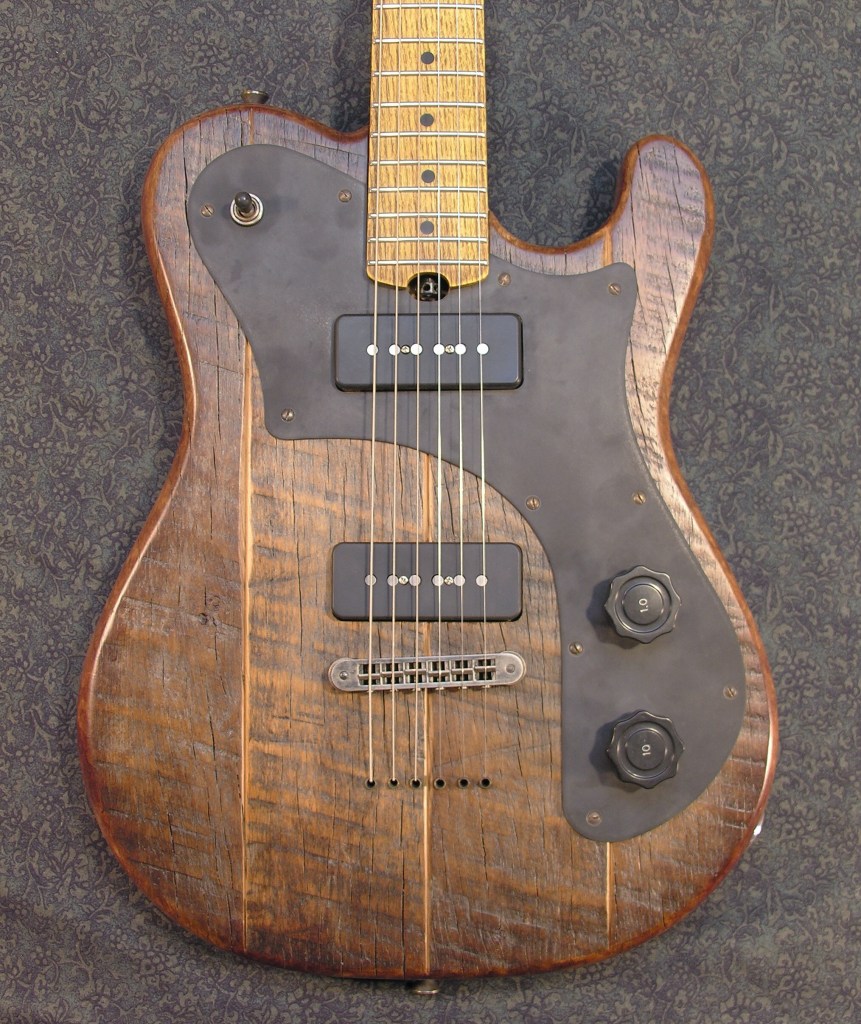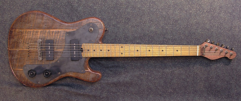 Four piece salvaged yellow poplar body.Walnut neck with Osage orange fretboard.