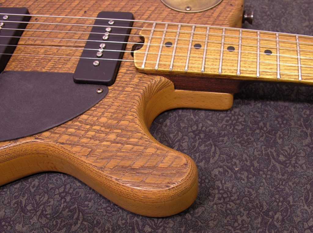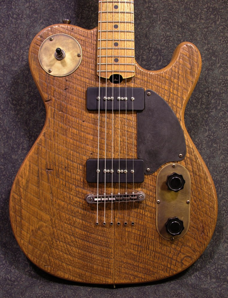Four piece salvaged beech body, chambered, with two piece salvaged American chestnut top.