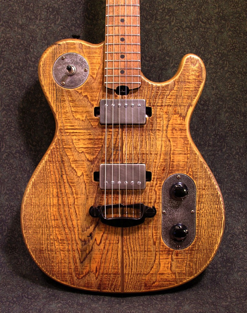 Two piece sassafras body.Red maple neck with persimmon fretboard.