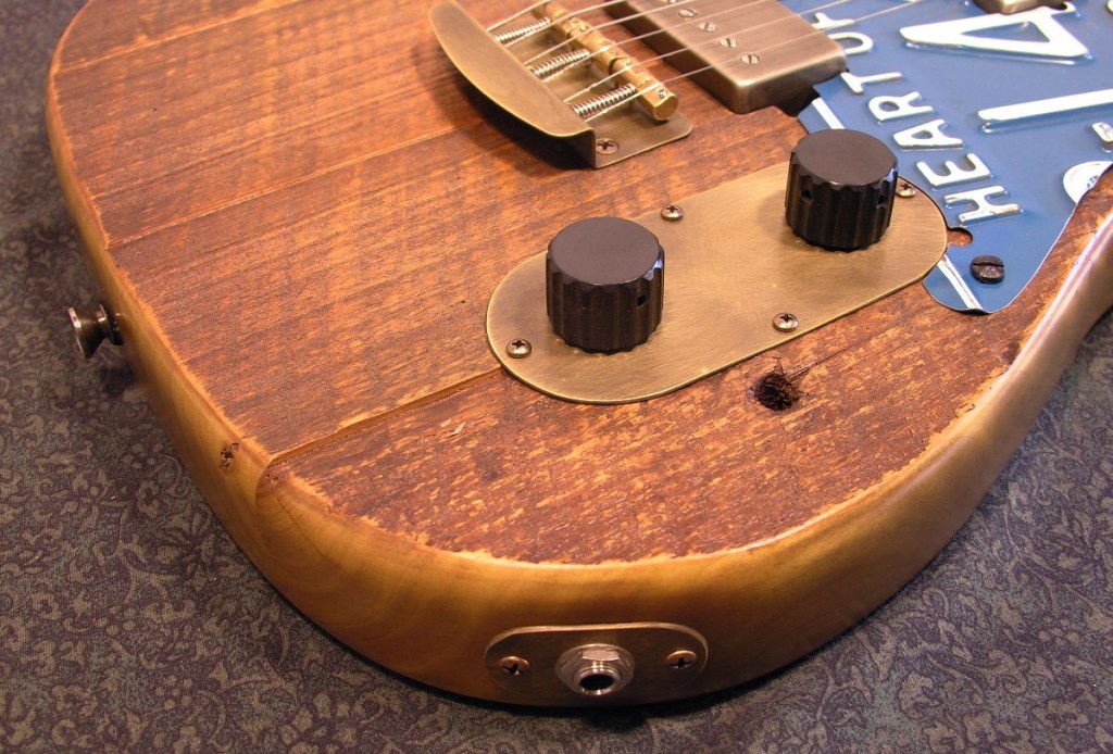 Four piece salvaged yellow poplar body.Maple neck with black locust fretboard.