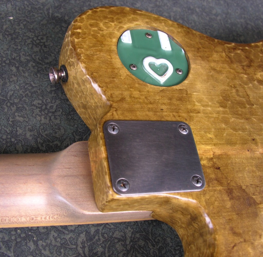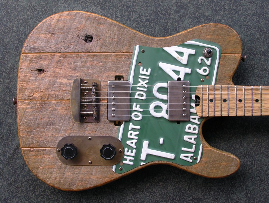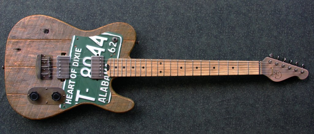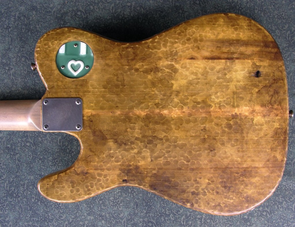 Four piece salvaged poplar body.Maple neck with persimmon fretboard.