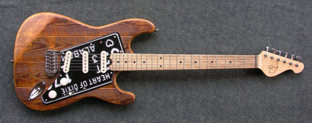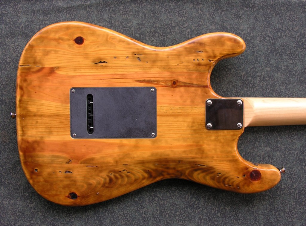 Four piece salvaged pine body.Maple neck with persimmon fretboard.