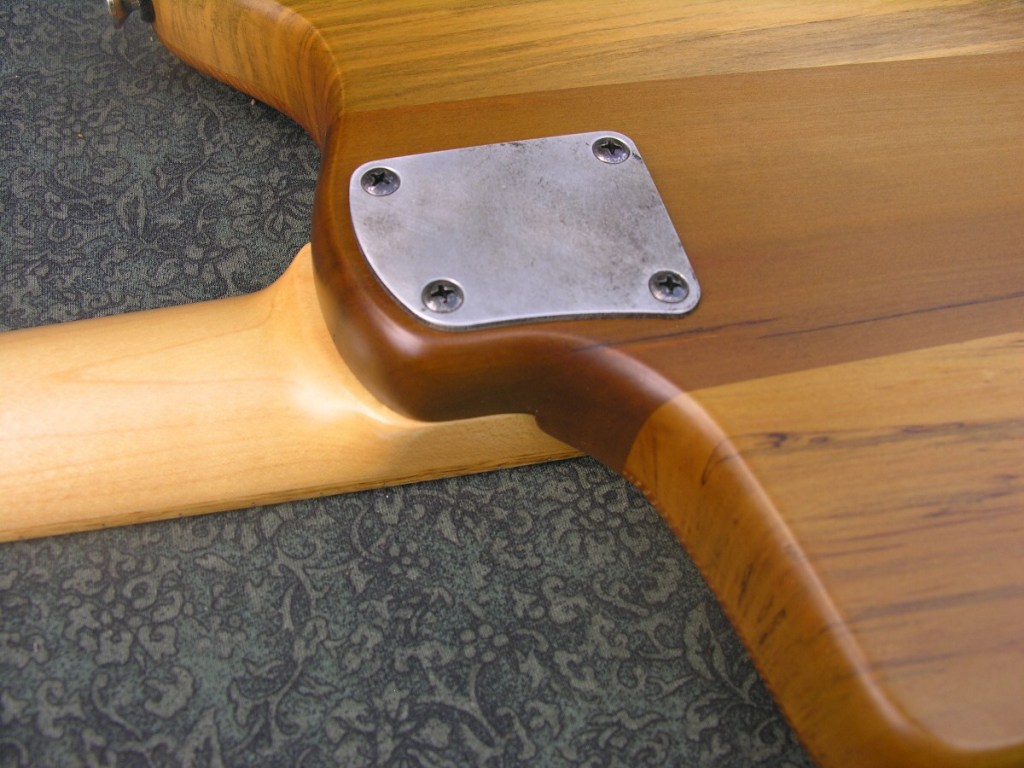 Maple neck with persimmon fretboard.