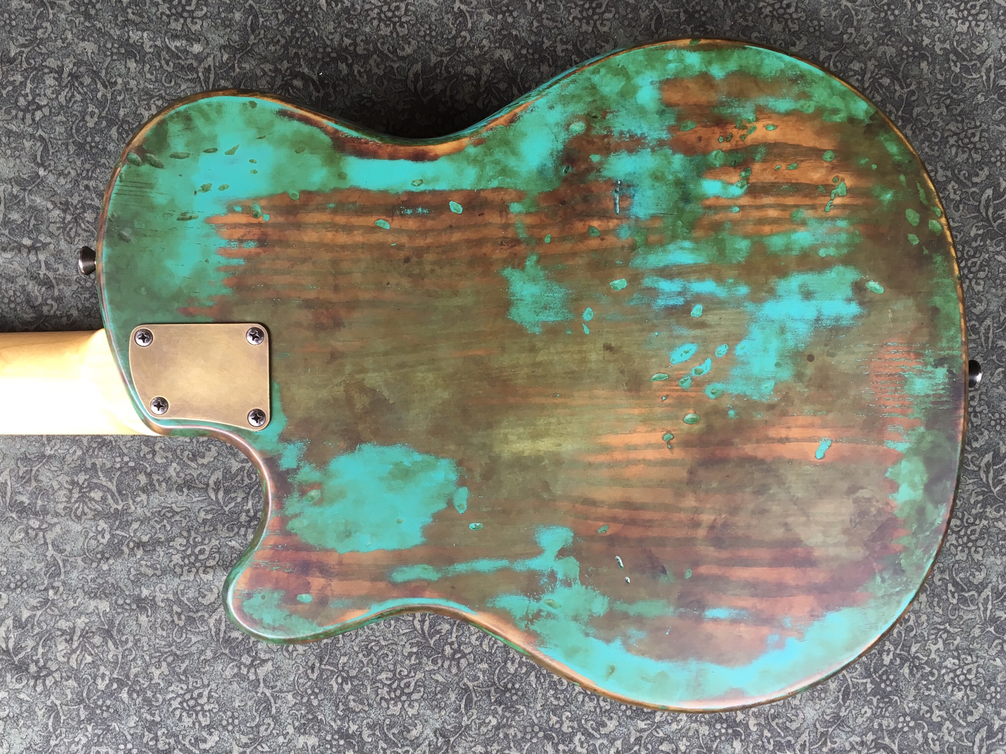Body is sassafras, chambered, with chalk paint over milk paint, and distressed.