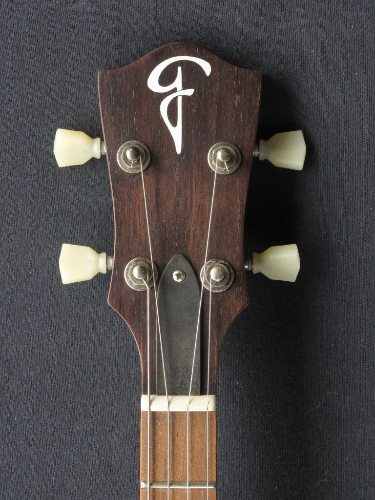 This is the headstock of an electric tenor guitar I started last summer. I’ll post more about it soon, but right now I wanna talk about my fancy new logo. Don’t worry, I’ll still be using the old one too, but Dismal Ax is a thing I have been hiding behind for too long. I started using it, rather than my name, because my name always seemed weird to me when I saw it in print; and seemed even weirder to apply to my work for some reason. I changed that name several years ago, and feel like I’ve finally grown into it enough to start putting it on my instruments. My more basic solid body electric guitars and basses will continue to get my old logo burned into the front of the headstock, but my fancier custom work, and other kinds of instruments will get this new “GF” inlay. This one is done in aluminum, to go with the hardware on the body. I’m not sure what other materials I will use yet, though. I kinda want to avoid pearl and abalone and such, but we’ll see. Anyway, I’m really happy with it!