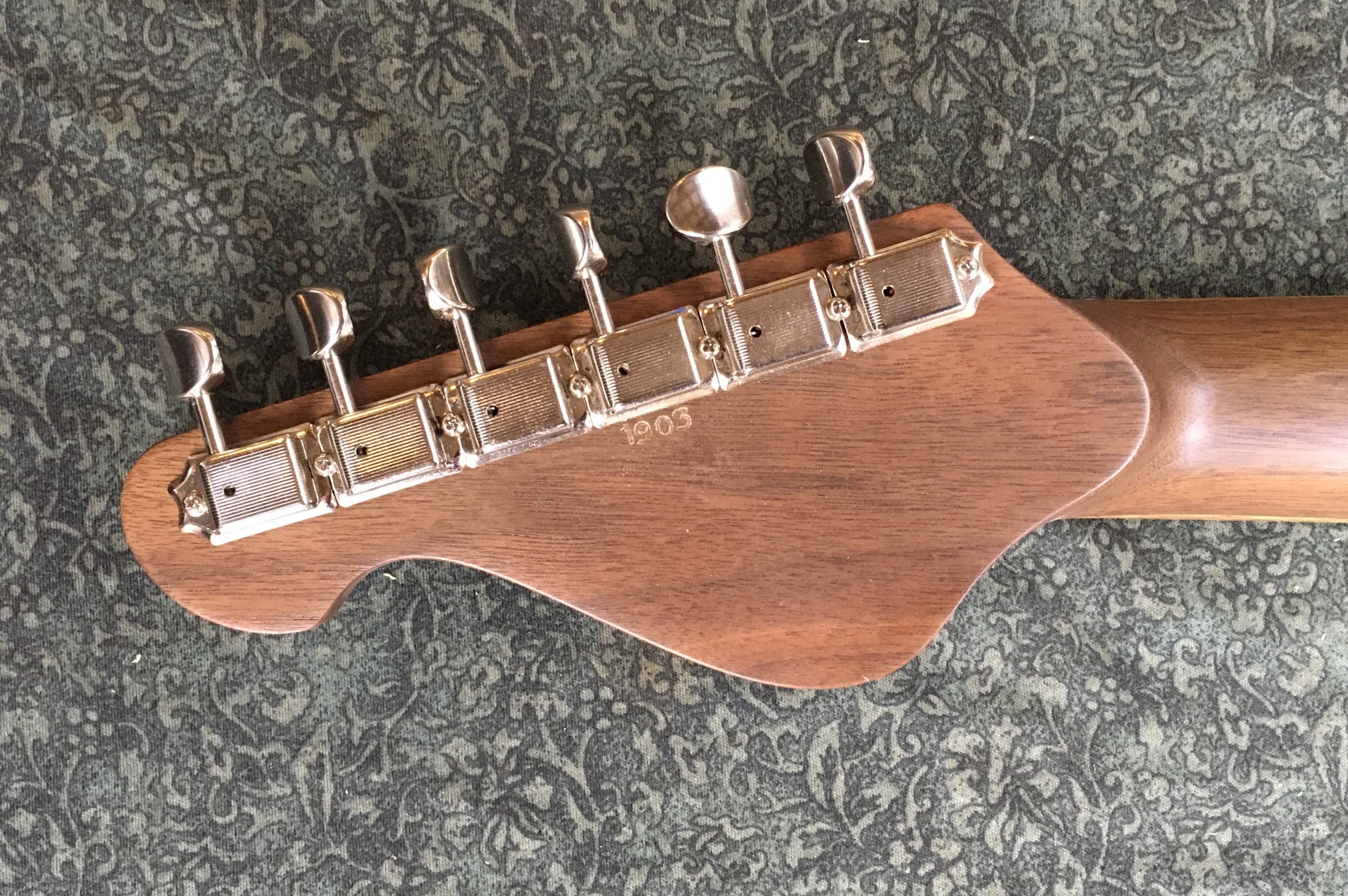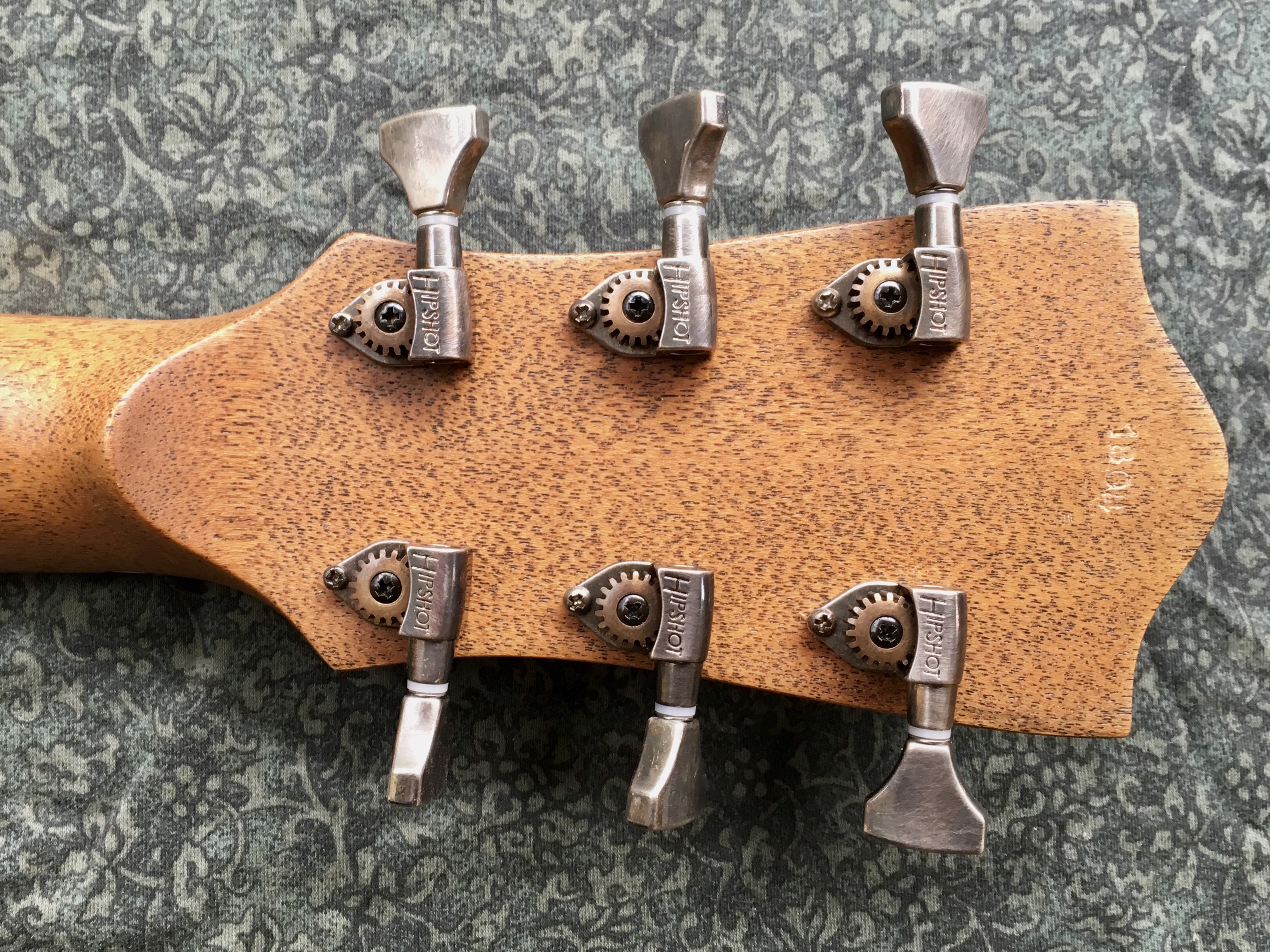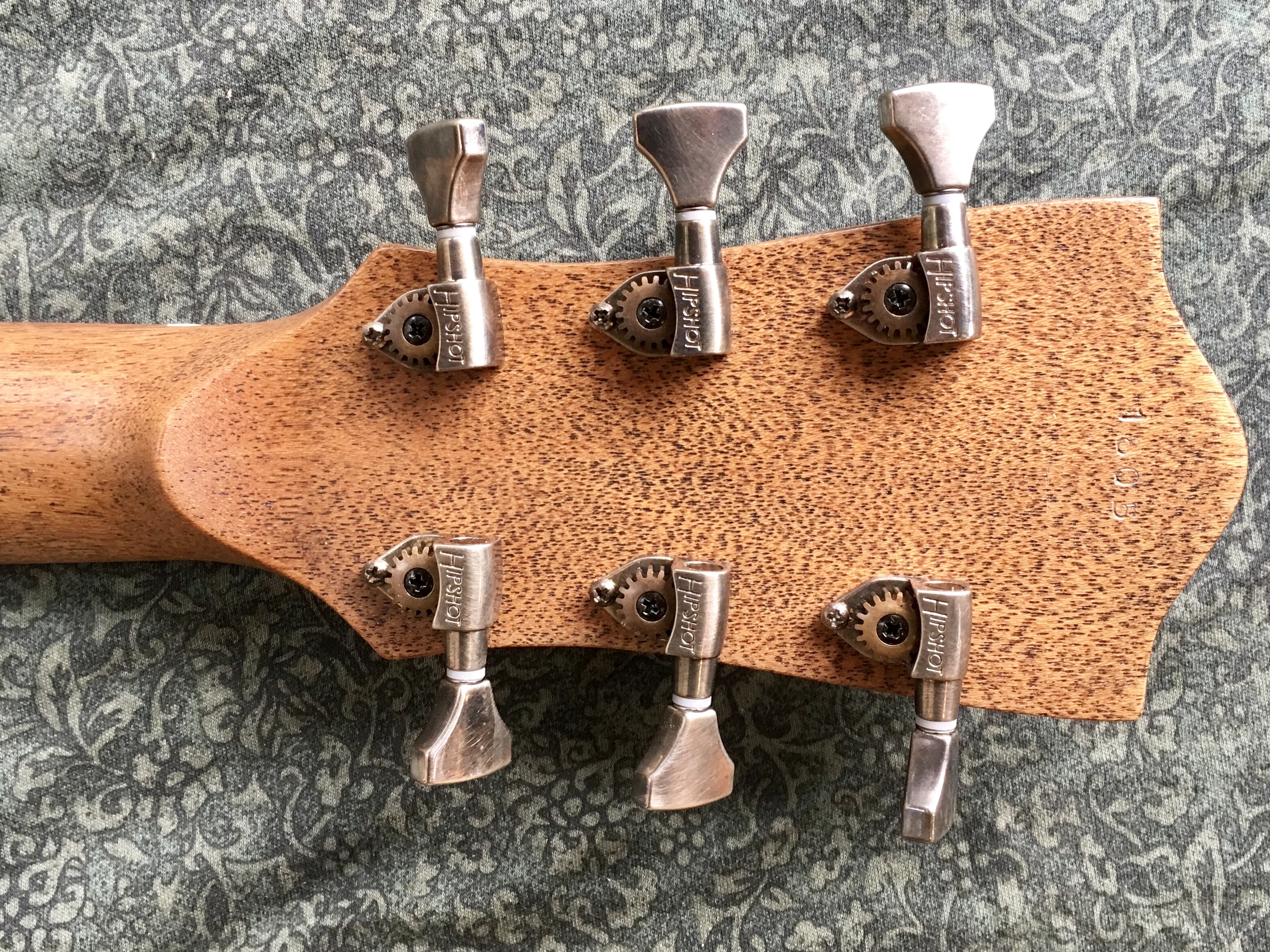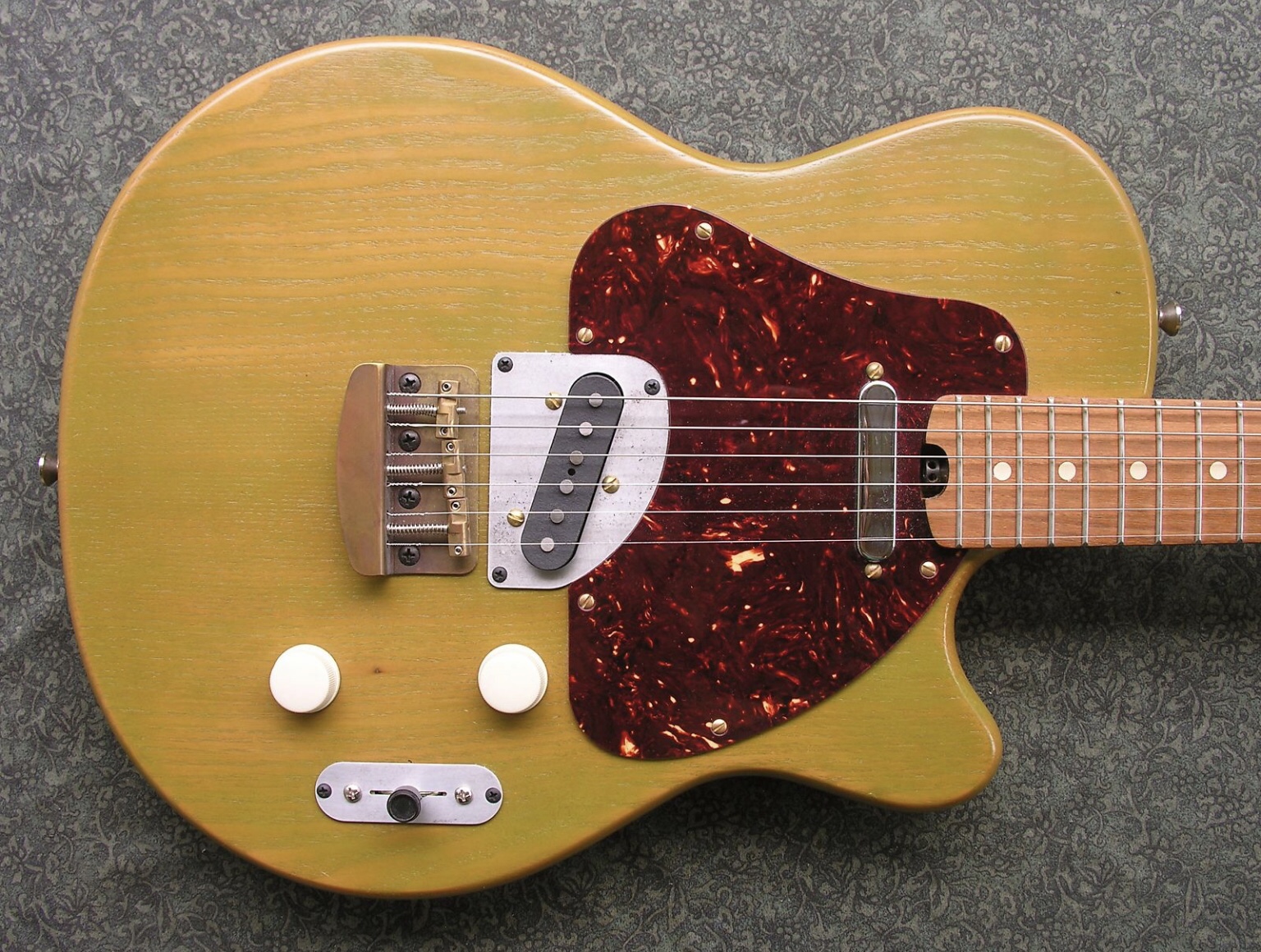 This was a custom commission; a 22 3/4″ scale electric tenor guitar, tuned GDAE.