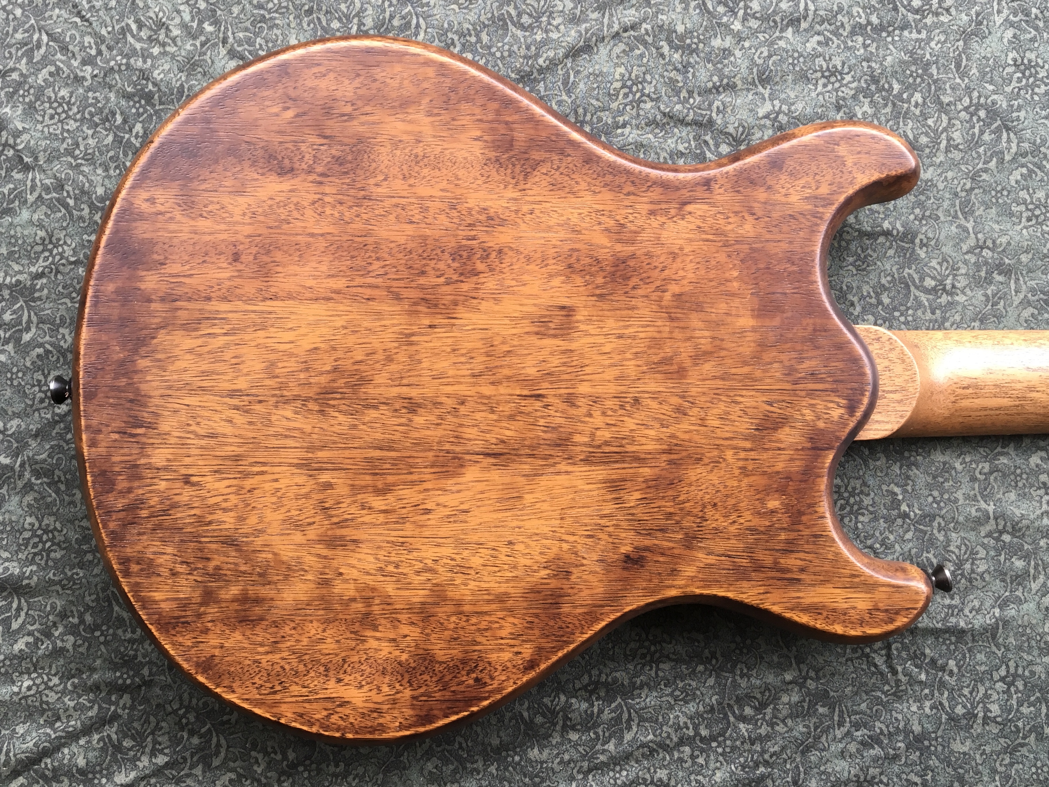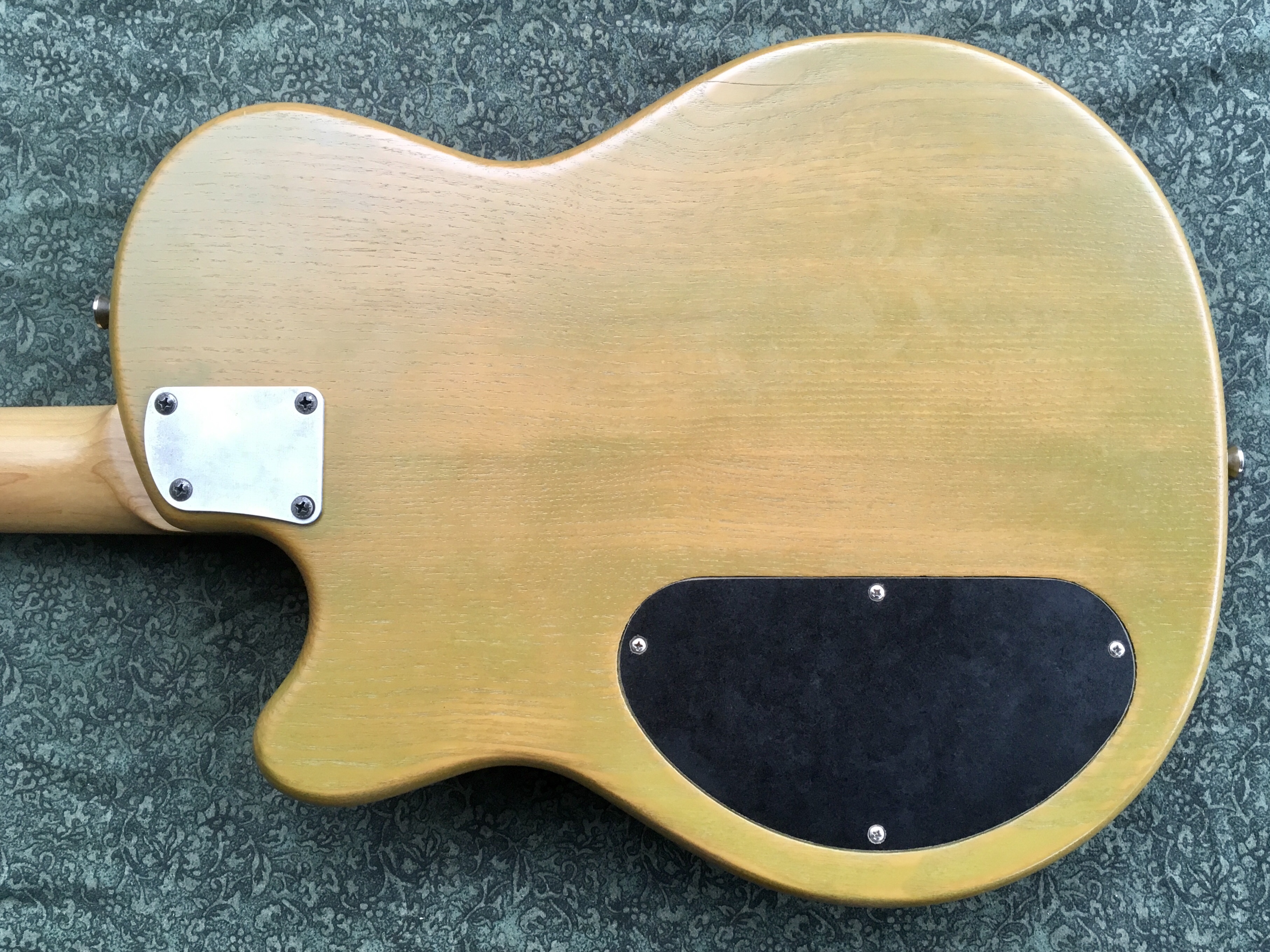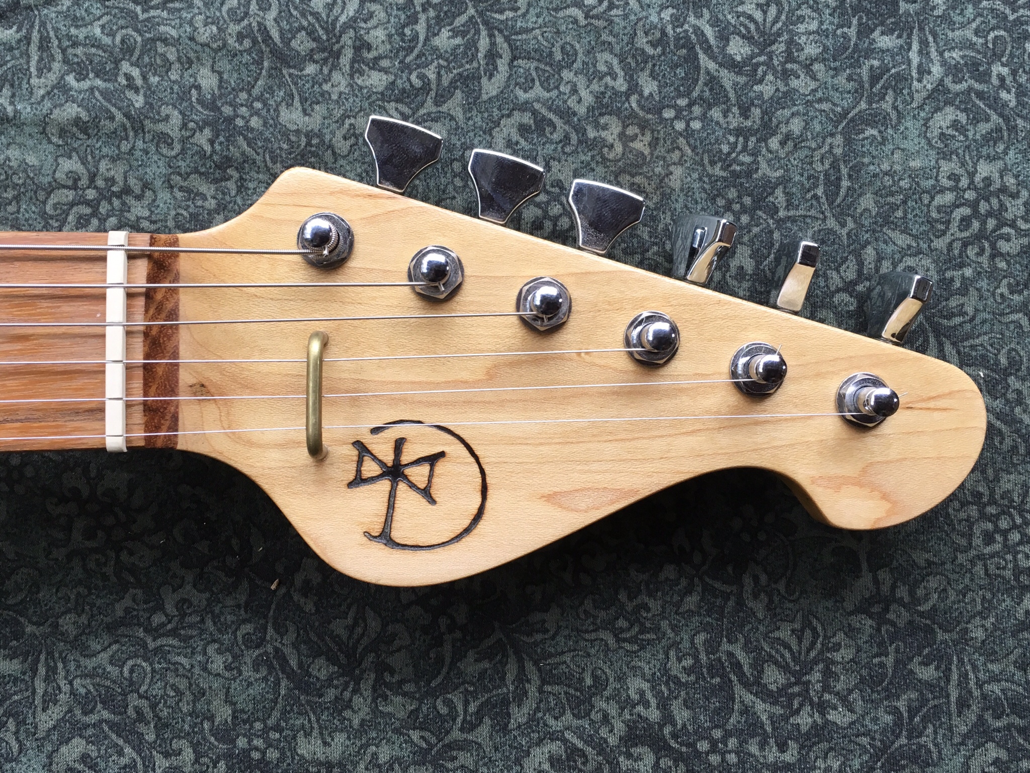 This was a custom commission; a 22 3/4″ scale electric tenor guitar, tuned GDAE.