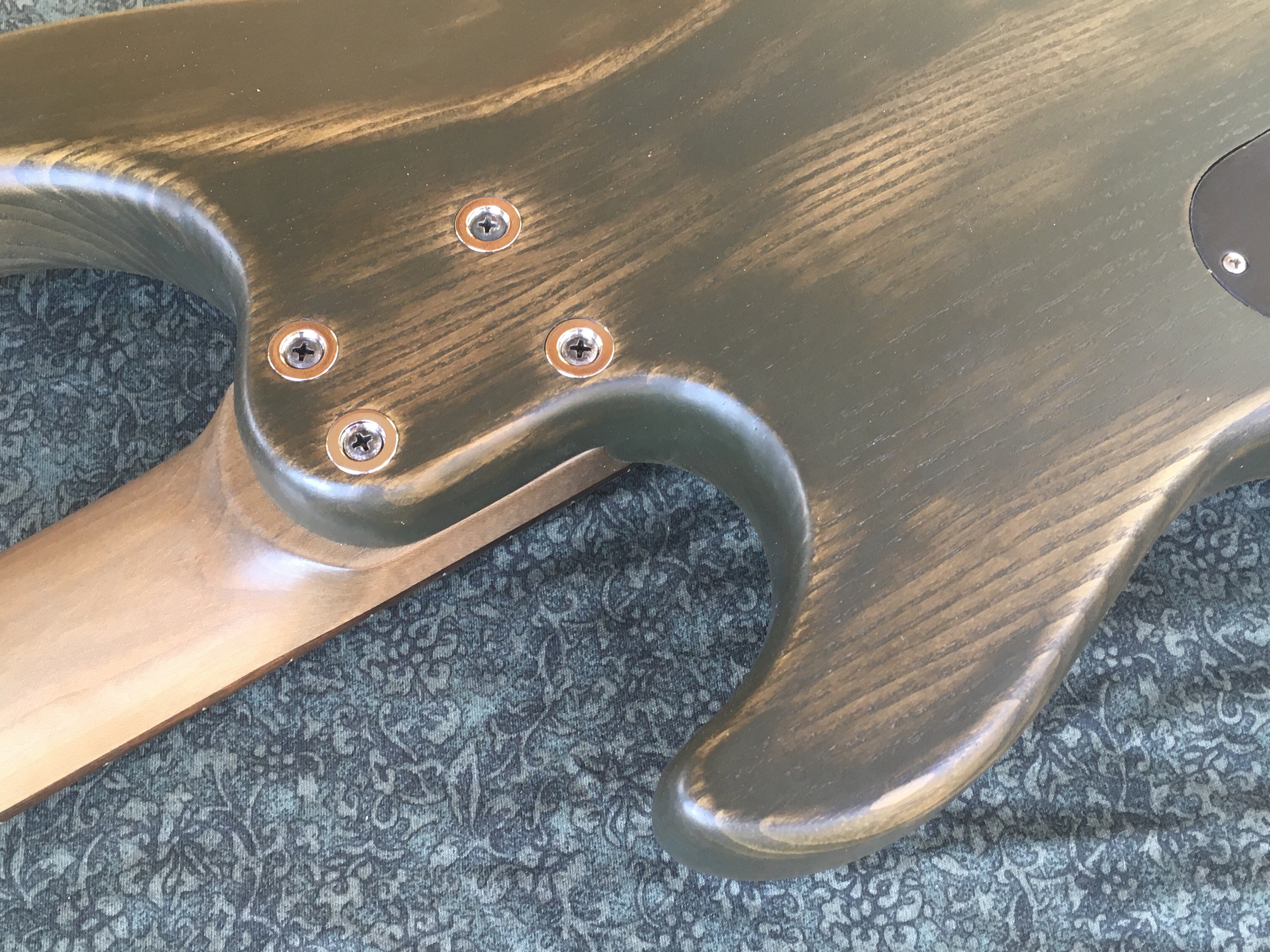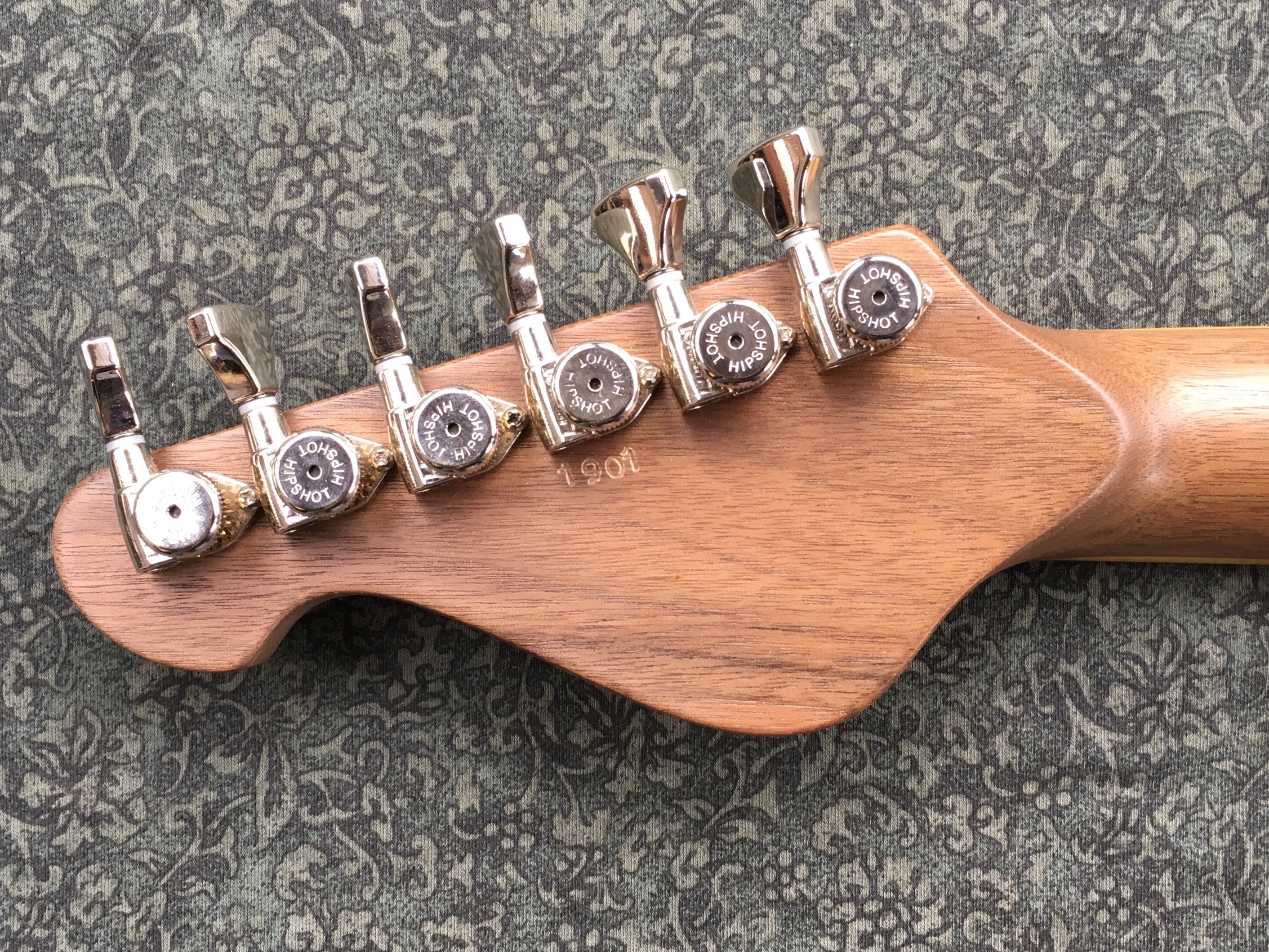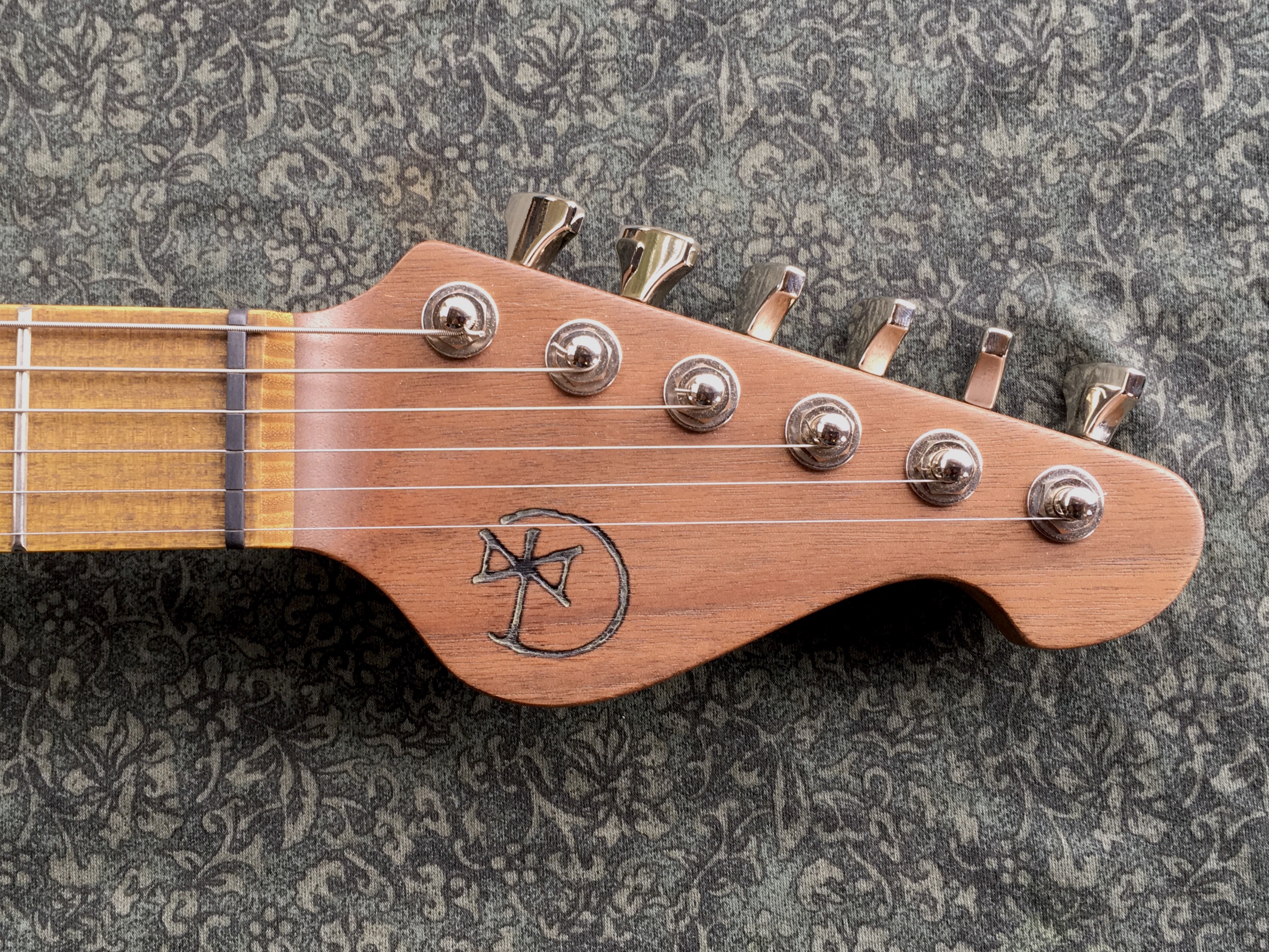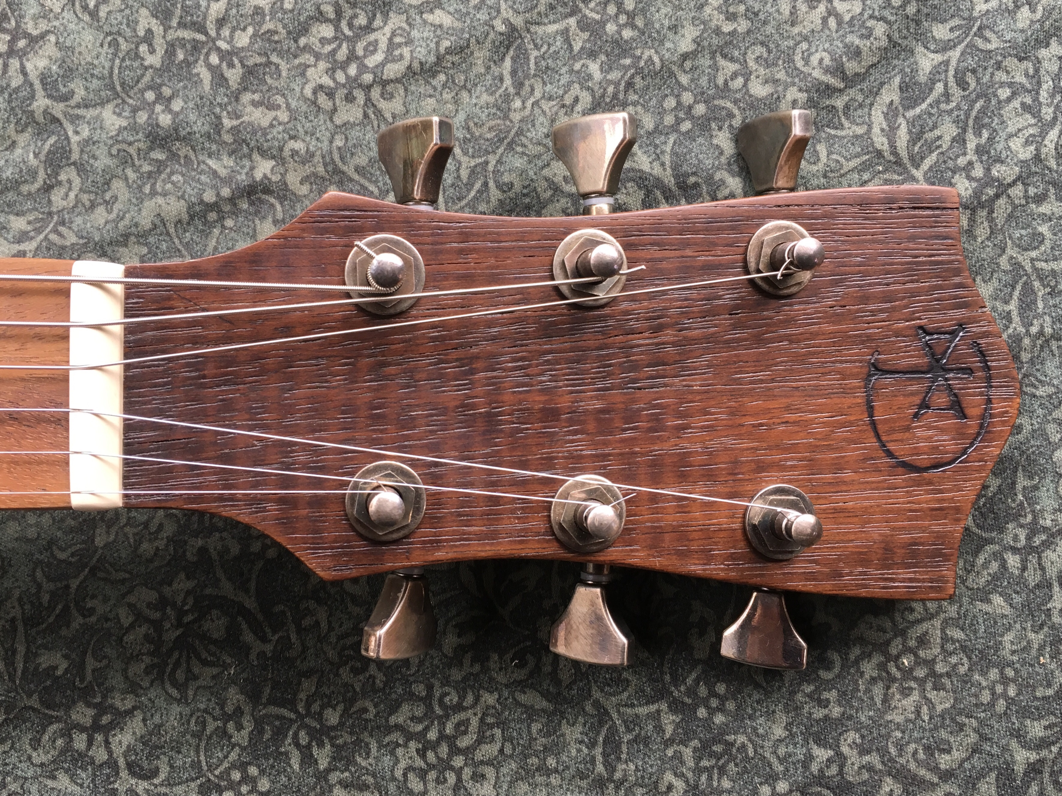 This was a custom commission; a 22 3/4″ scale electric tenor guitar, tuned GDAE.