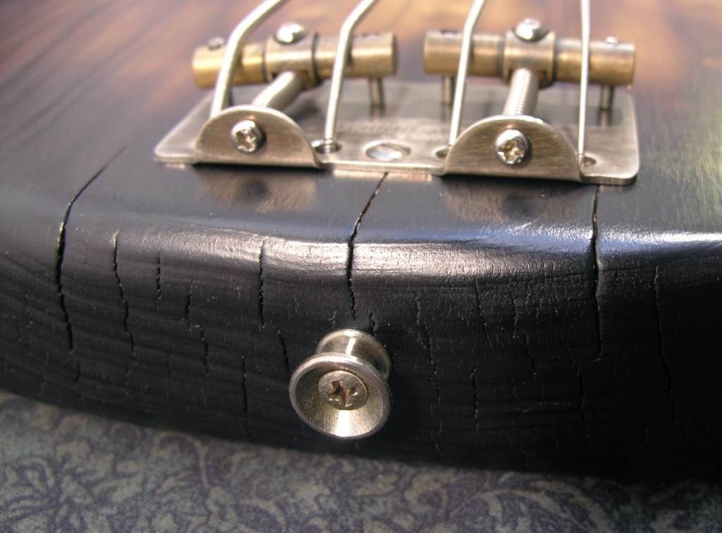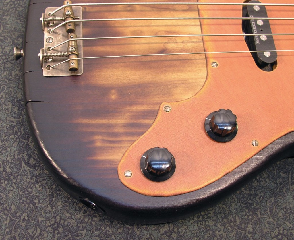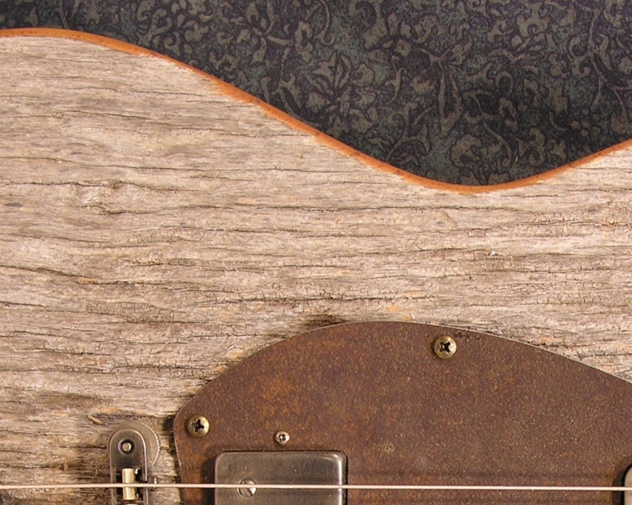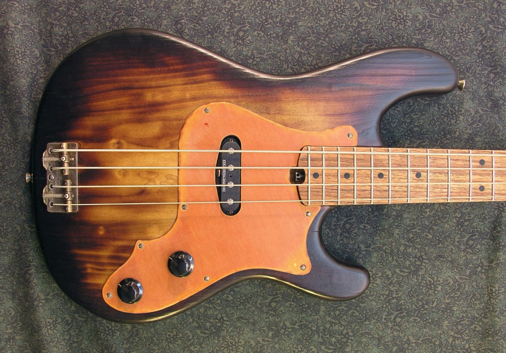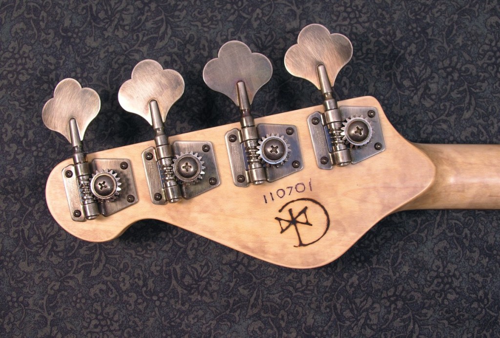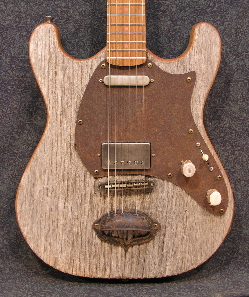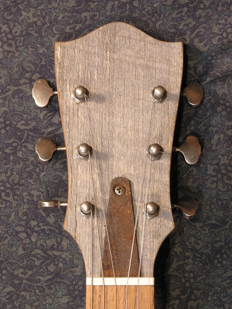 Walnut neck with black locust fretboard and beech barnwood headstock overlay.