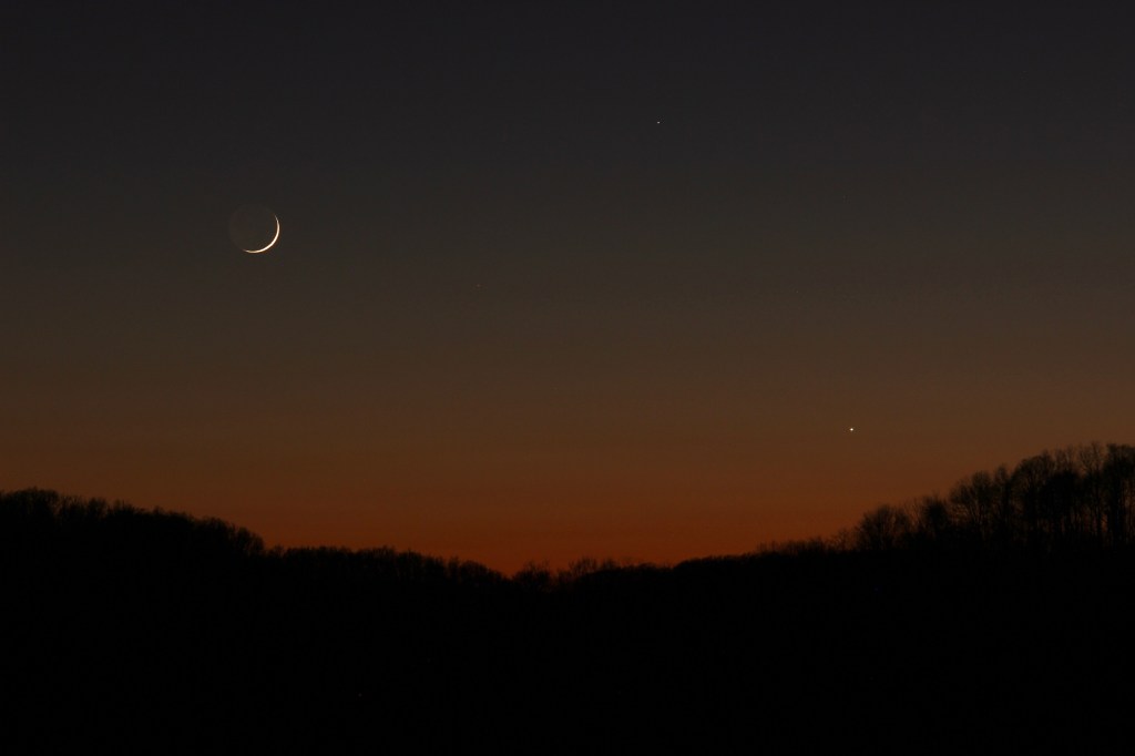 12/24/22. Moon, Venus, and Mercury. More hereMars in Taurus, with Pleiades above, Hyades to the right, Capella in the constellation Auriga to the left.Andromeda and a swath of the Milky Way across Cassiopeia and Perseus.M45, the Pleiades Andromeda Galaxy (M31) with companion dwarf galaxies, M110 above, and M32 below and to the right.Alnitak, one of the stars in Orion’s Belt, with the Flame Nebula to the left. Horsehead barely visible below.